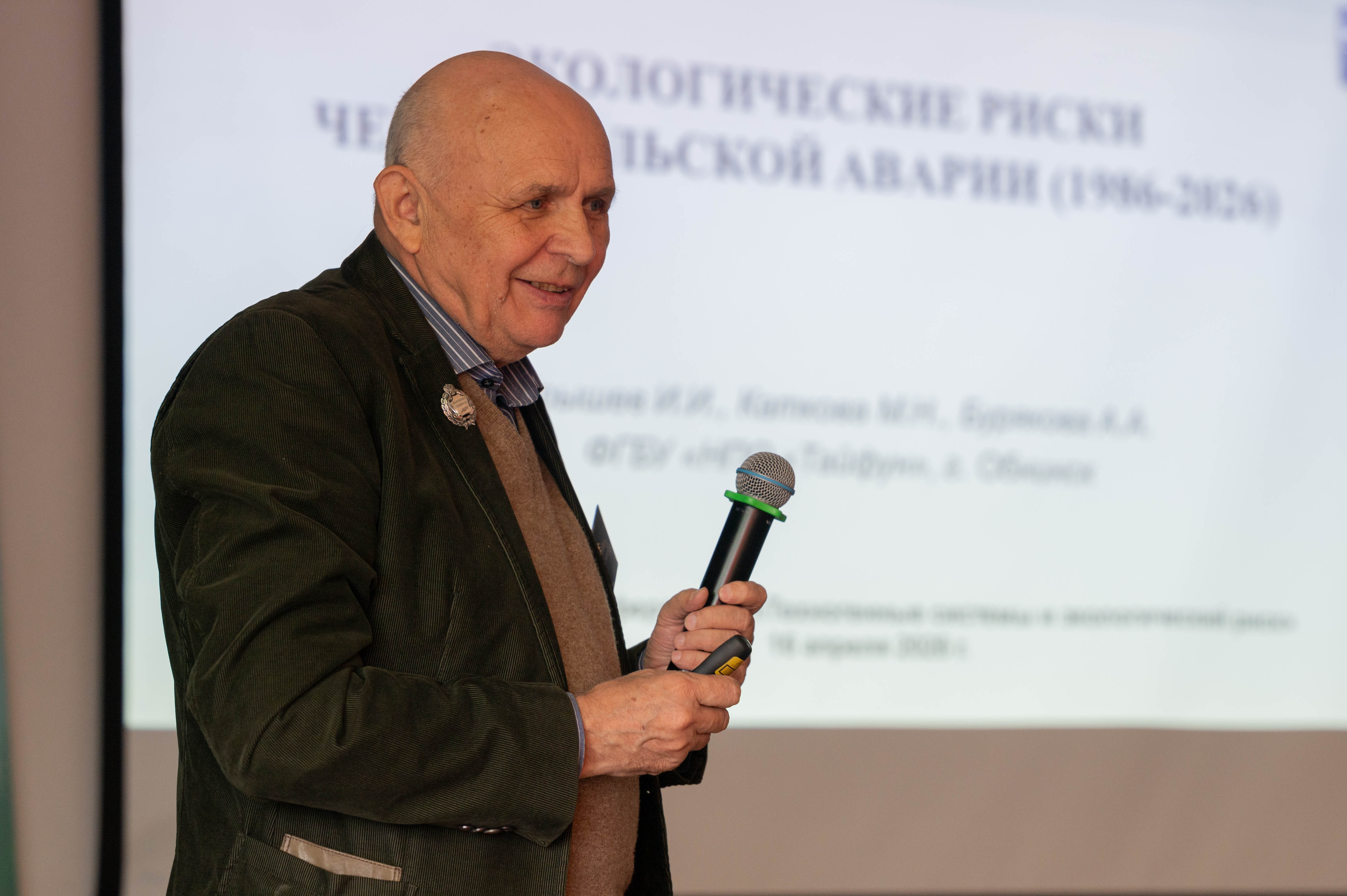 Конференция проводилась накануне 40-ой годовщины трагических событий на Чернобыльской АЭС, что обусловило заглавную тематику пленарного заседания. Д.ф.-м.н., профессор, главный научный сотрудник ФГБУ «НПО «Тайфун» И.И. Крышев выступил с докладом на тему «Экологические риски Чернобыльской аварии (1986-2026)», в котором он не только представил научные итоги многолетних исследований, которые воплотились в реальные мероприятия по снижению неблагоприятных последствий аварии, но и поделился личными воспоминаниями о тех драматических событиях и непростых решениях, о людях, организовавших и проводивших ликвидацию последствий Чернобыльской аварии. Выступление И.И. Крышева вызвало большой отклик и обсуждения среди участников конференции.