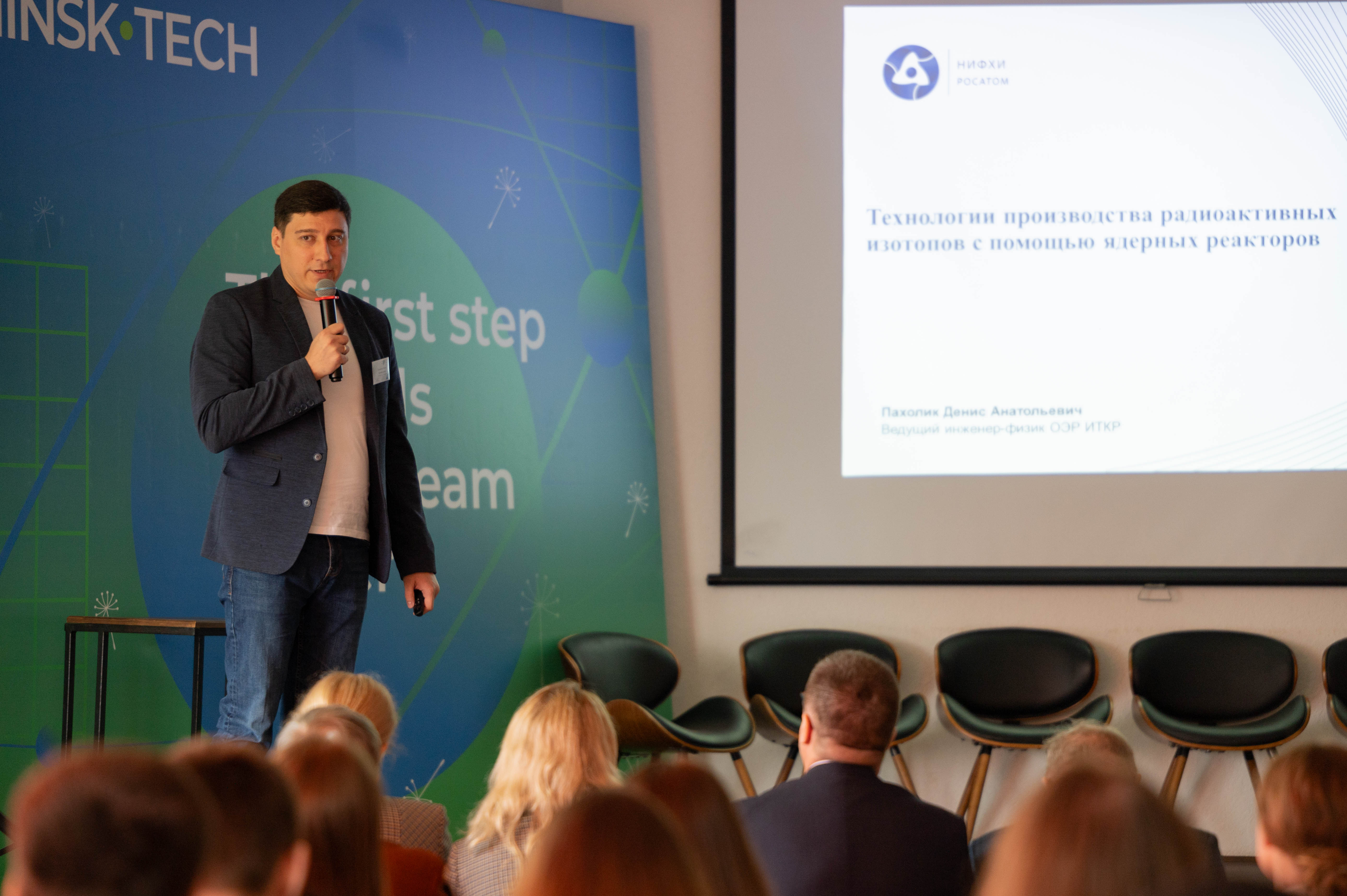 Ведущий инженер-физик отдела эксплуатации реактора АО НИФХИ им. Л.Я. Карпова Д.А. Пахолик в своем докладе «Технологии производства радиоактивных изотопов с помощью ядерных реакторов» рассказал о мирных применениях ядерных технологий в неэнергетической сфере и современном уровне производства изотопов на исследовательском ядерном реакторе в НИФХИ им. Л.Я. Карпова.