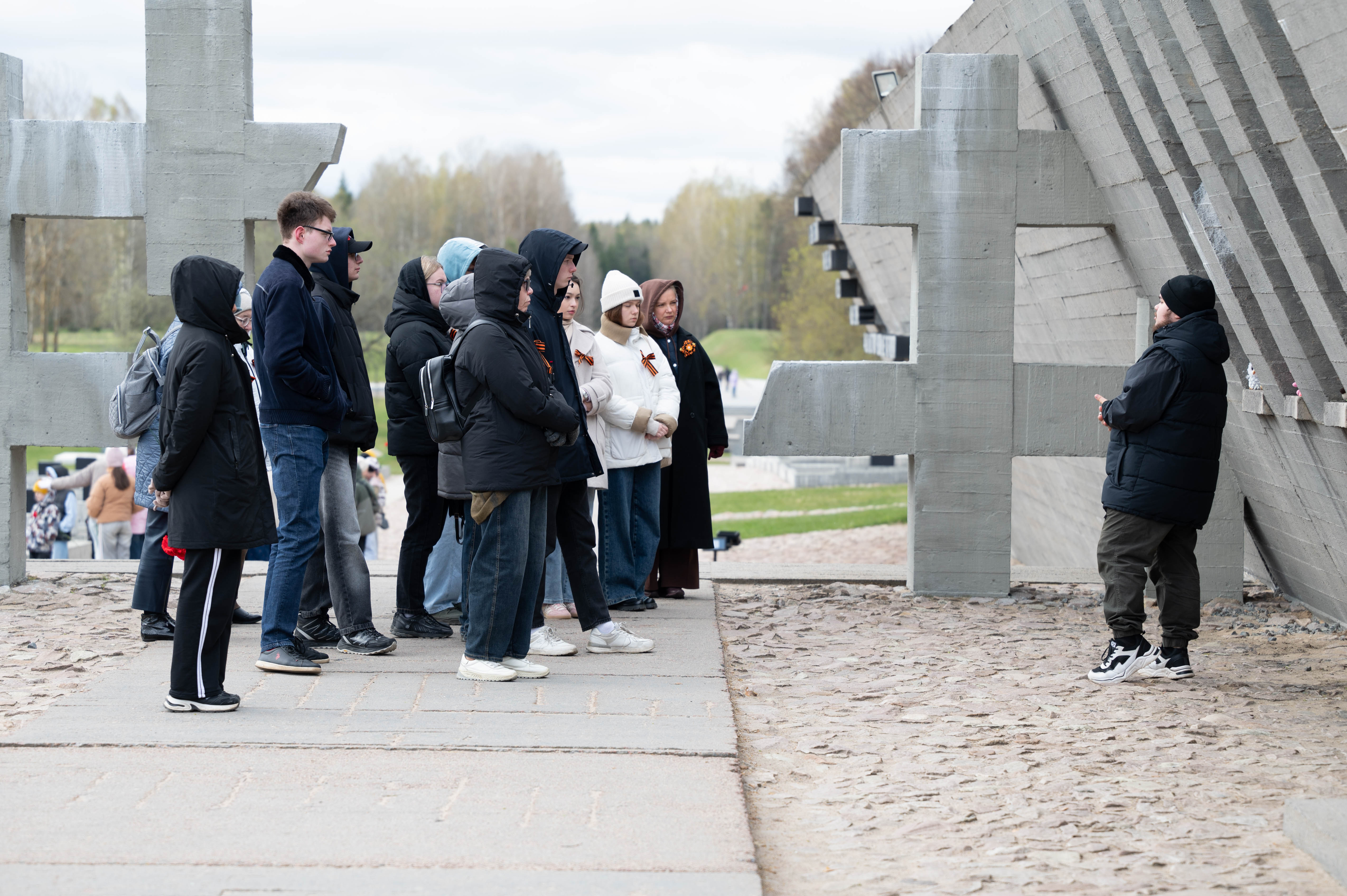 Частью программы стало посещение мемориального комплекса «Хатынь». Студенты почтили память погибших мирных жителей и отдали дань уважения героям, защищавшим страну в годы Великой Отечественной войны. Участники экскурсии погрузились в историю трагедии деревни Хатынь, узнали о страшных событиях того времени, прошли мимо труб-обелисков, установленных на местах сожжённых домов, и услышали скорбные звуки колоколов. Это посещение стало важным напоминанием о цене Победы и необходимости сохранять историческую память.